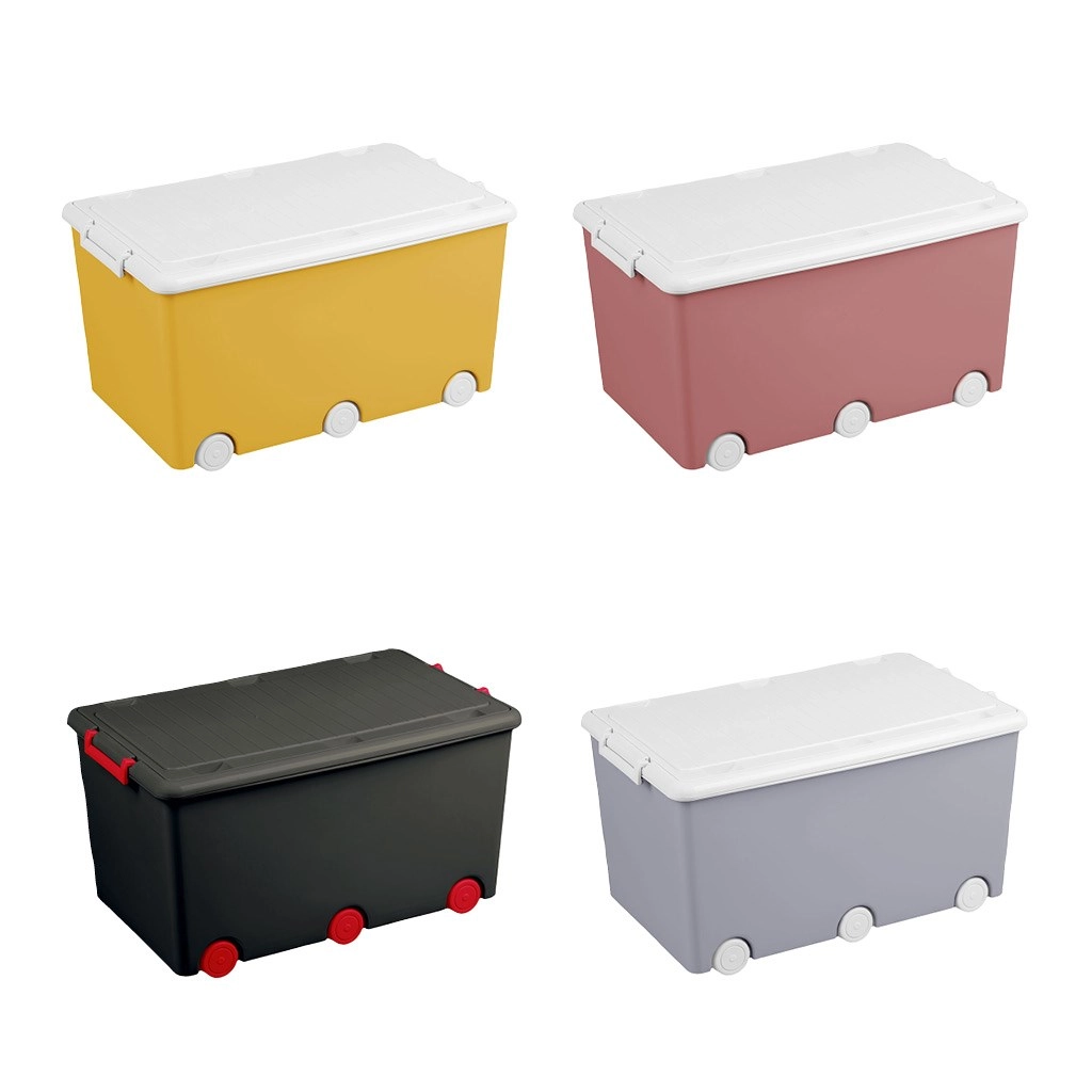 Enostavno in hitro pospravite otroško sobo s to prostorno škatlo za igrače na kolescih. Ponuja prostornino 60 litrov, mere 57 × 36 × 29 cm in 6 koles za preprosto premikanje. Zahvaljujoč stranskemu zapiranju z 2 gumboma varno shrani igrače, knjige in drobne predmete. Škatla je izdelana iz kakovostne atestirane plastike in jo lahko zlagate za prihranek prostora.