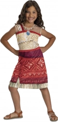 Ta licenciran kostum Disguise, navdihnjen s filmom Disney, otrokom omogoča, da se takoj vživijo v vlogo pogumne Vaiane. Obleka ima privlačno rdeče‑bež izvedbo s potiskom plemenskih motivov, navideznim poševnim pasom in resastim robom. Integriran tisk ogrlice dopolni celoten videz brez potrebe po dodatnih dodatkih.