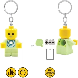 LEGO obesek v obliki dojenčka bo navdušil male in velike oboževalce. Kompaktno telo minifigure je pritrjeno na trden kovinski obroč in verižico, zato zanesljivo drži ključe, hkrati pa služi kot praktična LED svetilka v vsakodnevnih situacijah.