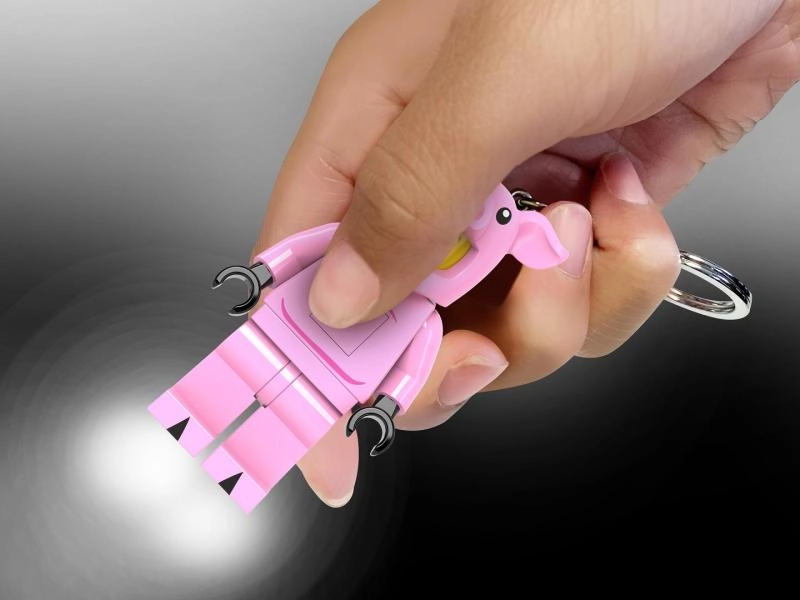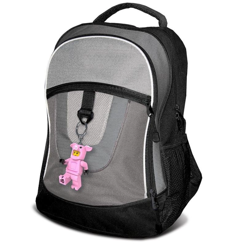 Prisrčen LEGO obesek v kostumu pujsca poživi vaše ključe in nahrbtnik, hkrati pa služi kot hitra pomoč v temi. Z enostavnim pritiskom gumba se aktivira svetla bela LED svetloba, ki olajša iskanje ključavnice ali malenkosti v torbi.