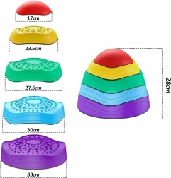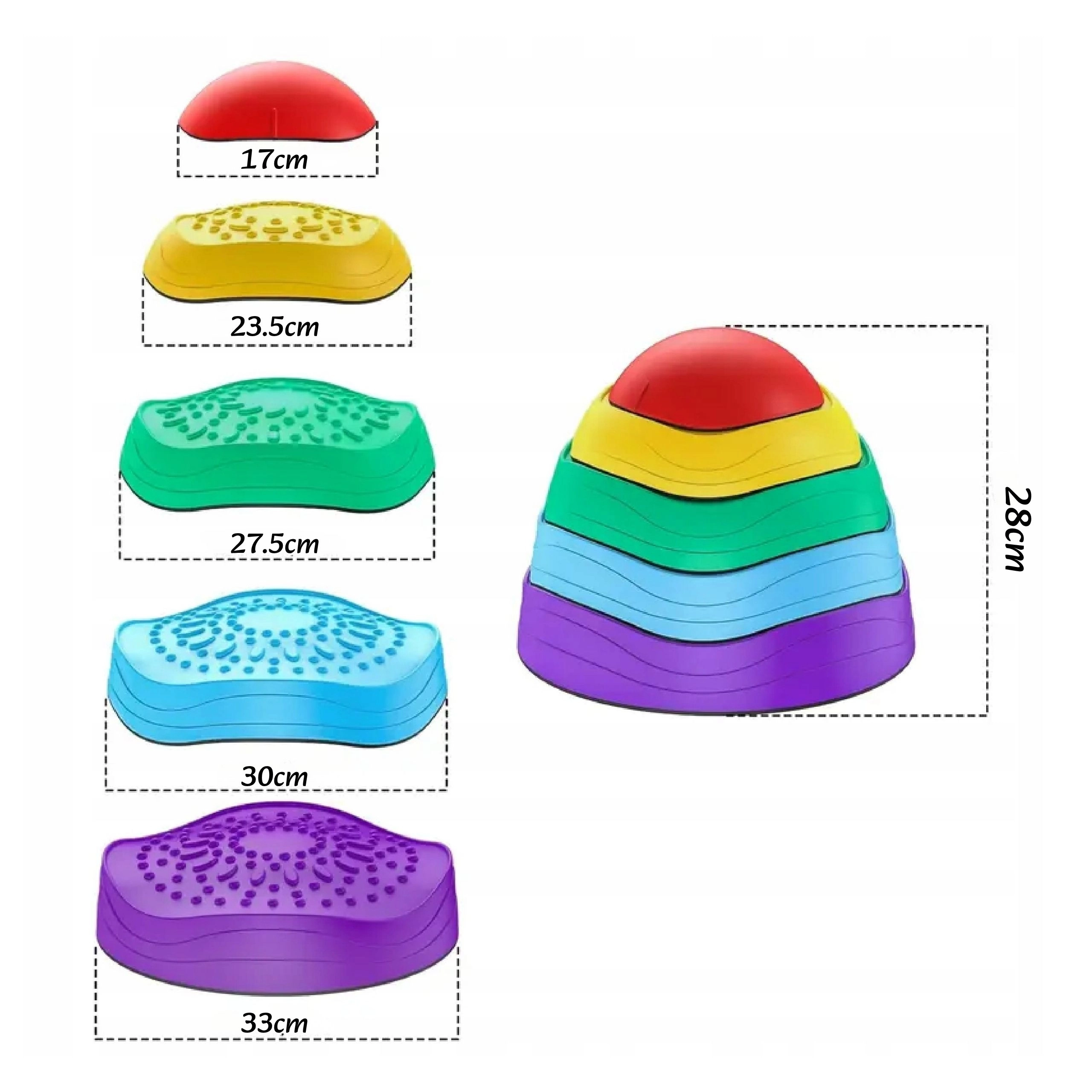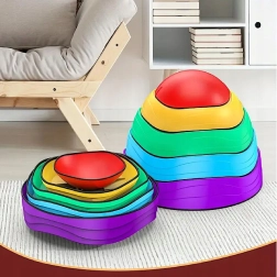 Barvni ravnotežni kamni za otroke od 3 let razvijajo ravnotežje, koordinacijo in grobo motoriko. Zahvaljujoč nedrseči osnovi, različnim teksturam in velikostim so idealni za postavljanje ovir, igre in ustvarjalno gibanje. Zložljiva zasnova olajša shranjevanje, živahne barve pa spodbujajo k aktivni igri.