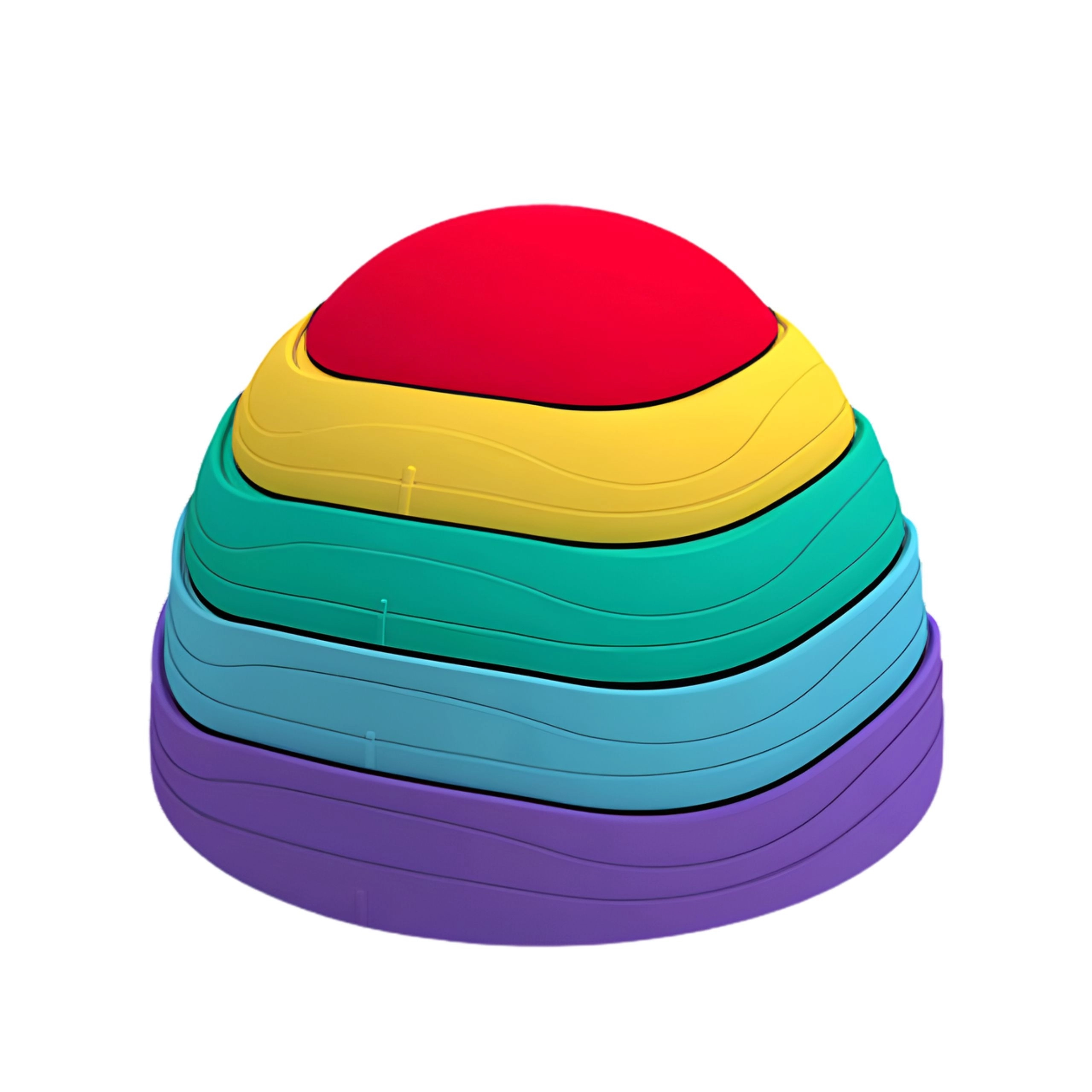 Kamenčke različnih velikosti lahko zlagate enega v drugega in jih sestavite v kompaktno »kupolo«, zato zavzamejo malo prostora in so vedno pripravljeni za uporabo.