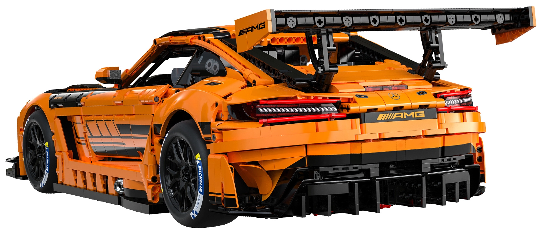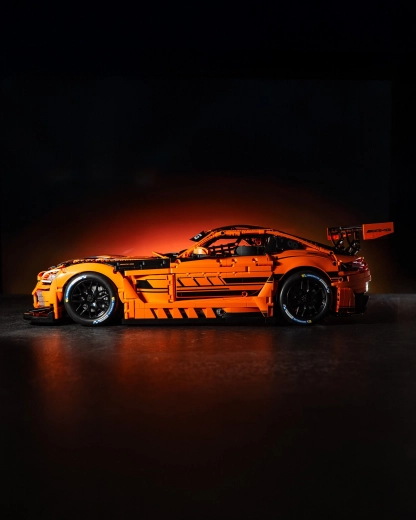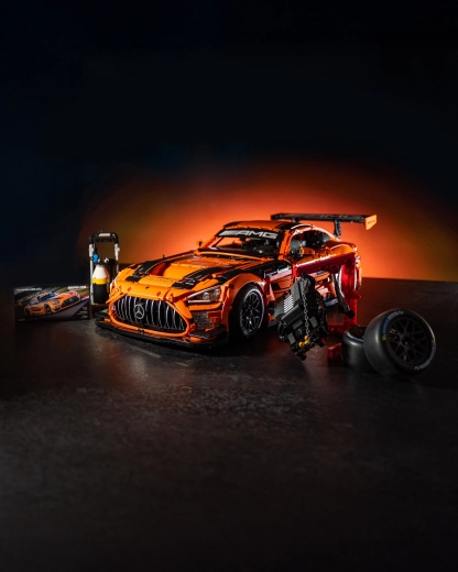 Več LED modulov poudari dirkaški videz licenciranega MERCEDES‑AMG GT3 s preciznimi potiski in realističnimi aerodinamičnimi elementi.