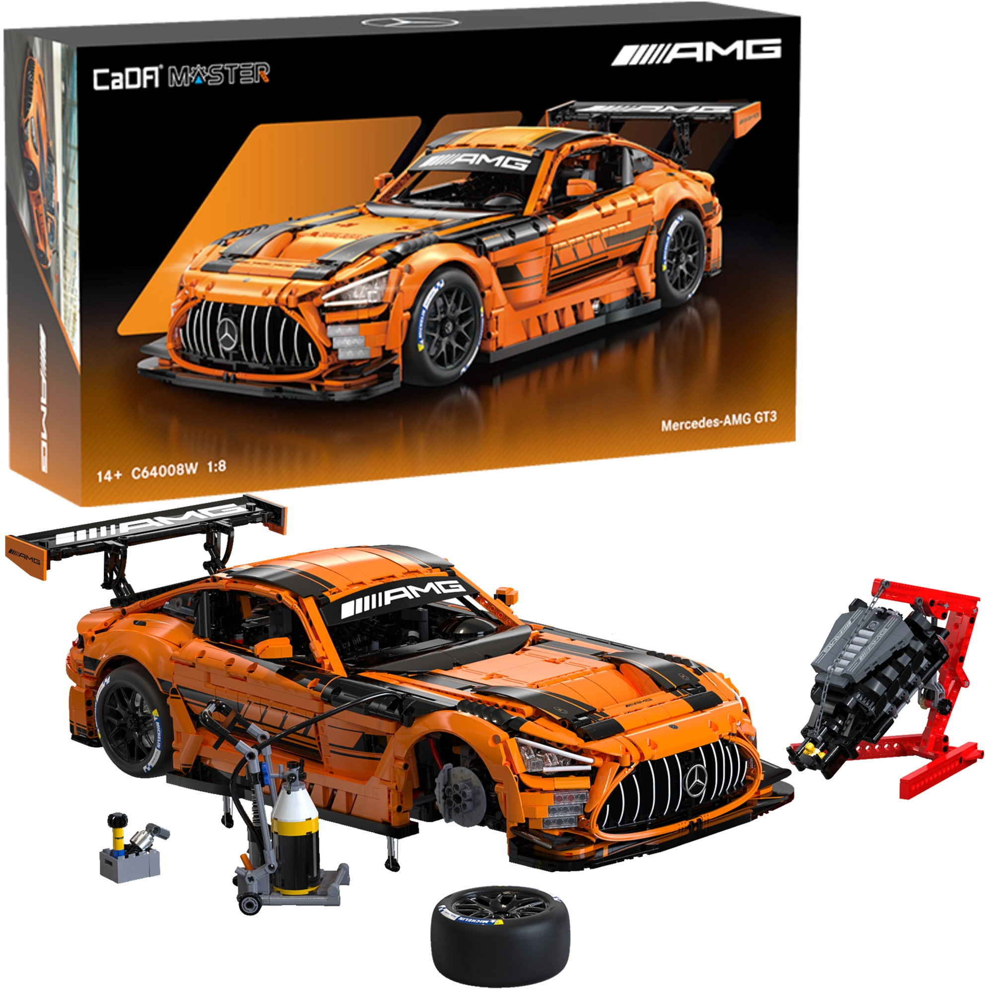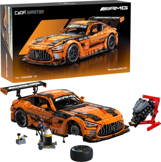 Uradno licenciran model MERCEDES‑AMG GT3 znamke CaDA Master prinaša vrhunsko gradbeno izkušnjo za zahtevne graditelje. Realistična karoserija s kakovostnimi potiski, funkcionalna mehanika in več kot 5.000 kosov zagotavljajo dolge ure zabave ter atraktiven rezultat za vitrino. Zahvaljujoč LED osvetlitvi in bogati opremi deluje model avtentično podnevi in ponoči.