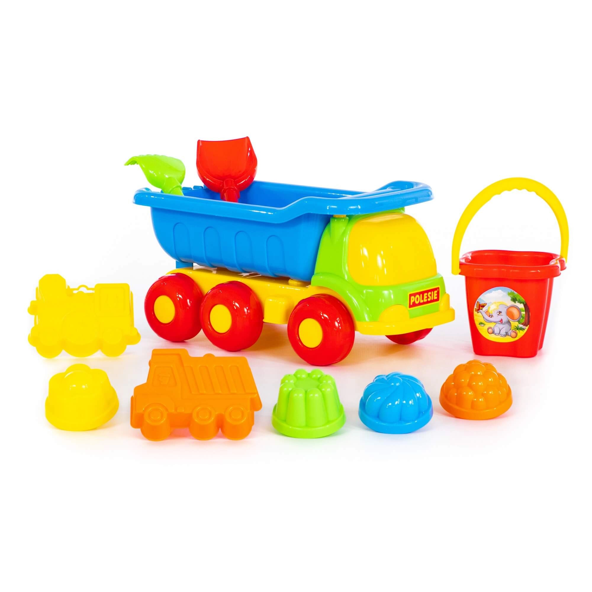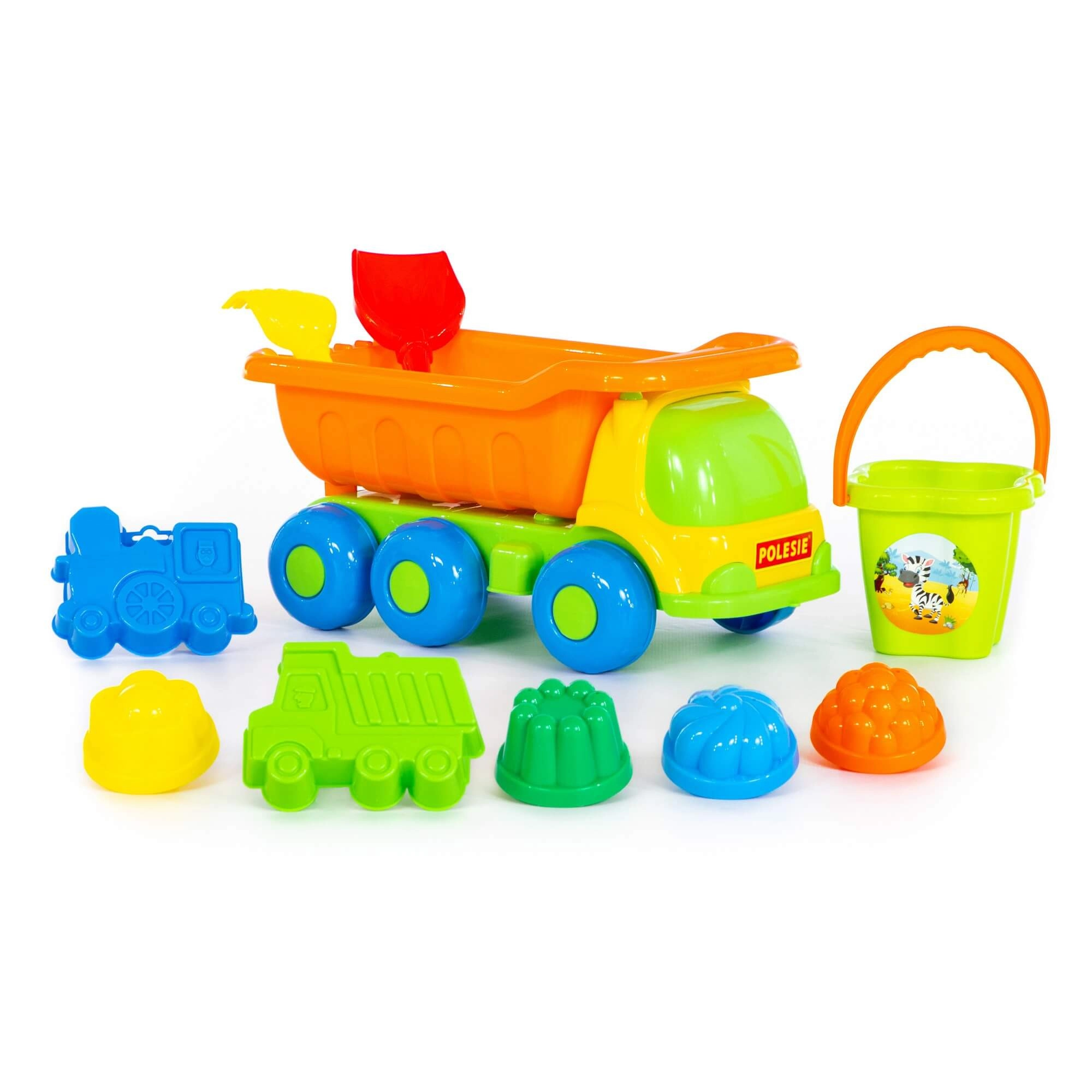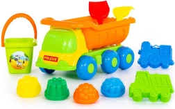 Ta pisan komplet za pesek z velikim tovornjakom bo razveselil male graditelje in ljubitelje ustvarjanja. Avto z funkcionalno nagibno keso zlahka prevaža pesek, kamenčke in drobne igrače, priložene lopatke, vedro in modelčki pa spodbujajo otrokovo domišljijo pri gradnji cest, gradov in oblik. Zahvaljujoč trpežni plastiki in zaobljenim delom je igra varna in udobna.