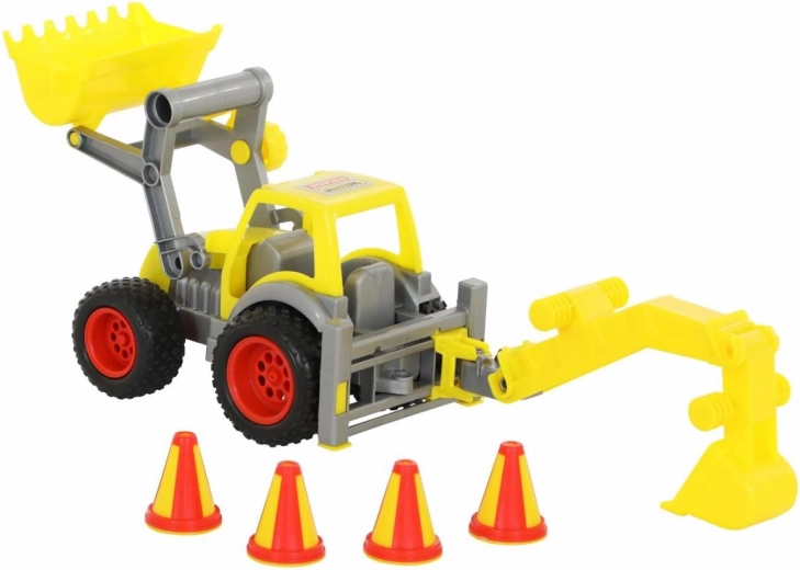 Traktor je opremljen z gumiranimi pnevmatikami za tiho in gladko vožnjo. Lopata in bager se preprosto upravljata ter razvijata fino motoriko, domišljijo in koordinacijo. V pakiranju najdete tudi 4 stožce za označevanje gradbišča in izmišljanje lastnih igralnih scenarijev.