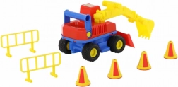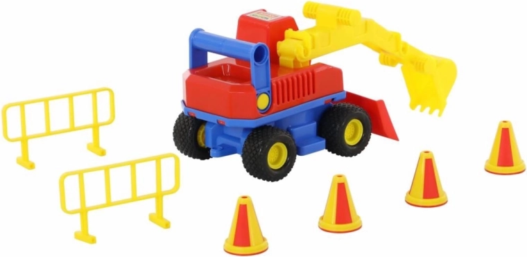 Mega bager ConsTruck otrokom prinaša dolge ure domiselne igre. Zahvaljujoč vzdržljivi izdelavi, mehkim gumijastim pnevmatikam in enostavno vodljivi roki z žlico lahko otroci zlahka zajemajo in premikajo manjše predmete. Priloženi so tudi stožci in zapore, ki podpirajo realistične scenarije na gradbišču.