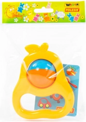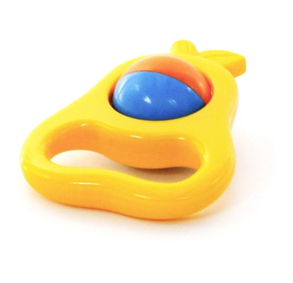 Odkrijte igrivo ropotuljico v obliki hruške, idealno za prvo raziskovanje zvokov in oblik. Izdelana je iz kakovostne, atestirane plastike, varna za vsakodnevno igro in enostavna za ohranjanje čistoče. Zahvaljujoč ergonomski odprtini za oprijem jo dobro držijo tudi majhne ročice.