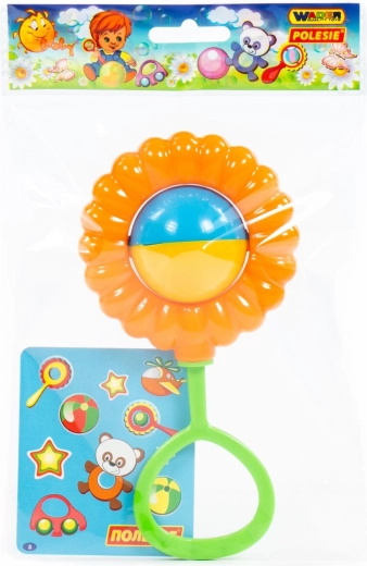 Prisrčna ropotuljica v obliki sončnice bo razveselila tudi najmlajše. Izdelana je iz kakovostnega atestiranega materiala, ima prijetno velikost 16 cm za drobne otroške ročice in oddaja prijeten zvok. Barva glede na trenutno zalogo. Cena je za 1 kos.