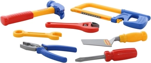 Praktičen komplet otroškega orodja s 7 deli bo razveselil male mojstre ter spodbujal njihovo domišljijo in spretnost. Vsebuje žago dolžine 27 cm s premičnimi zobmi, kladivo 21 cm in druge kose orodja za varno igro. Barvna izvedba se lahko razlikuje glede na trenutno razpoložljivost na zalogi.