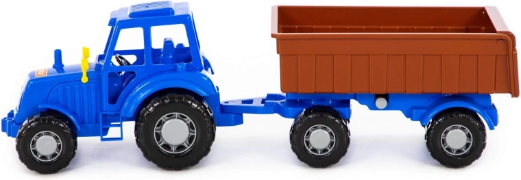 Traktor je zasnovan na kovinskih oseh, ki zagotavljajo stabilnost in gladko gibanje. Prikolica je odstranljiva in primerna za prevoz manjših predmetov. Kakovostna plastika prenese običajno uporabo in zagotavlja dolgo življenjsko dobo igrače.