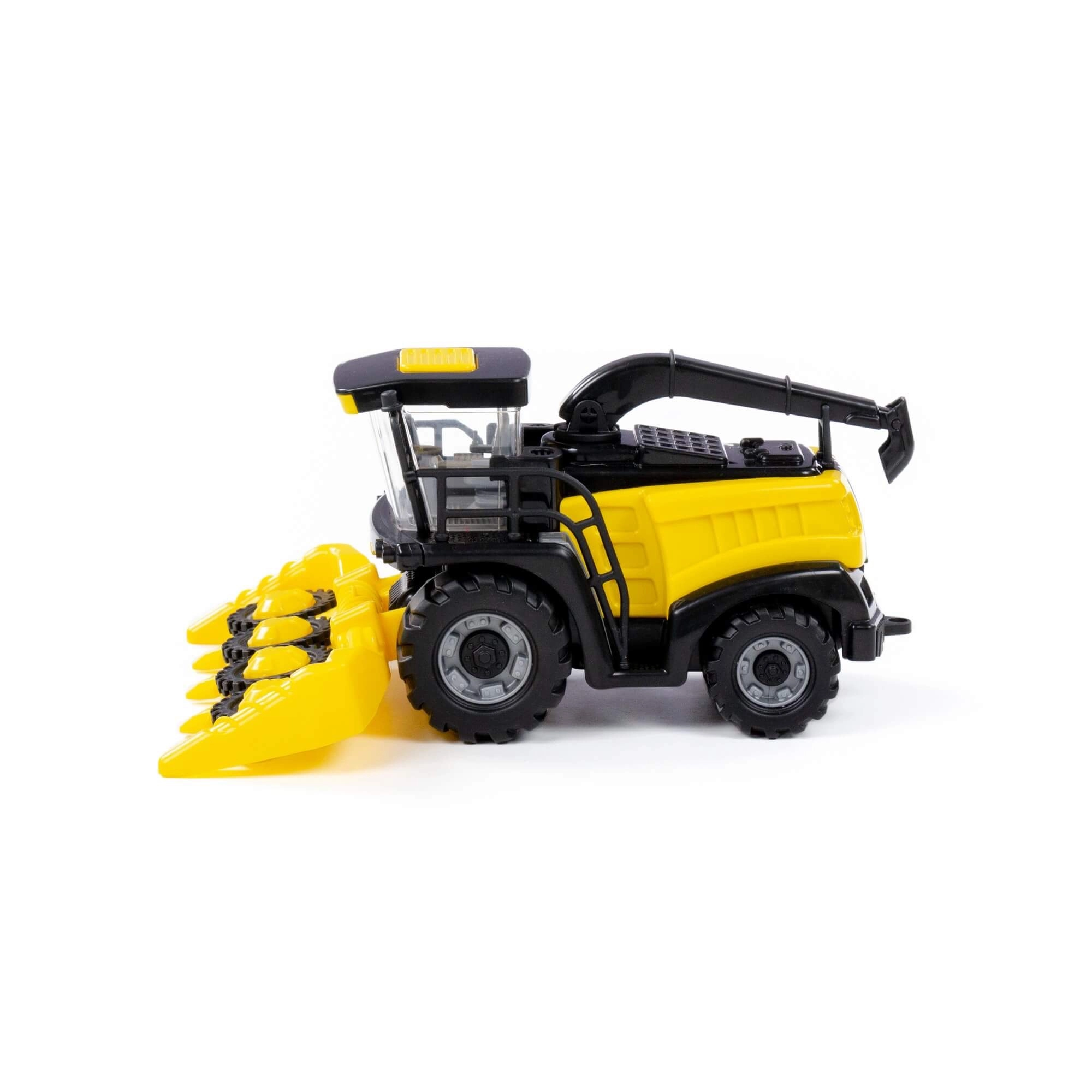 Ta robusten model žetelnice iz kategorije kmetijske mehanizacije je idealen za ustvarjalno igro doma in na prostem. Zahvaljujoč vztrajniku se vozilo po potisku gladko zažene, realistni detajli, vključno s kabino iz prozorne plastike in posnemanimi kontrolnimi elementi, pa še okrepijo doživetje igre.