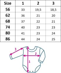 Bodi je enobarven, zlahka ga kombinirate z drugim oblačilom in je odlična izbira za osnovno opremo. Primeren za doma in na poti, za voziček ali posteljico.