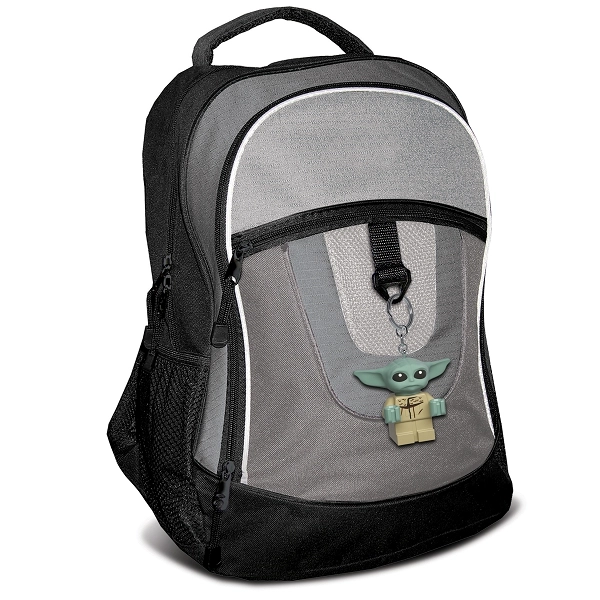 Podrobna minifigurica GROGU z ikonično velikimi ušesi in potiskanim trupom je stilski dodatek za ključe, torbo ali šolski nahrbtnik.