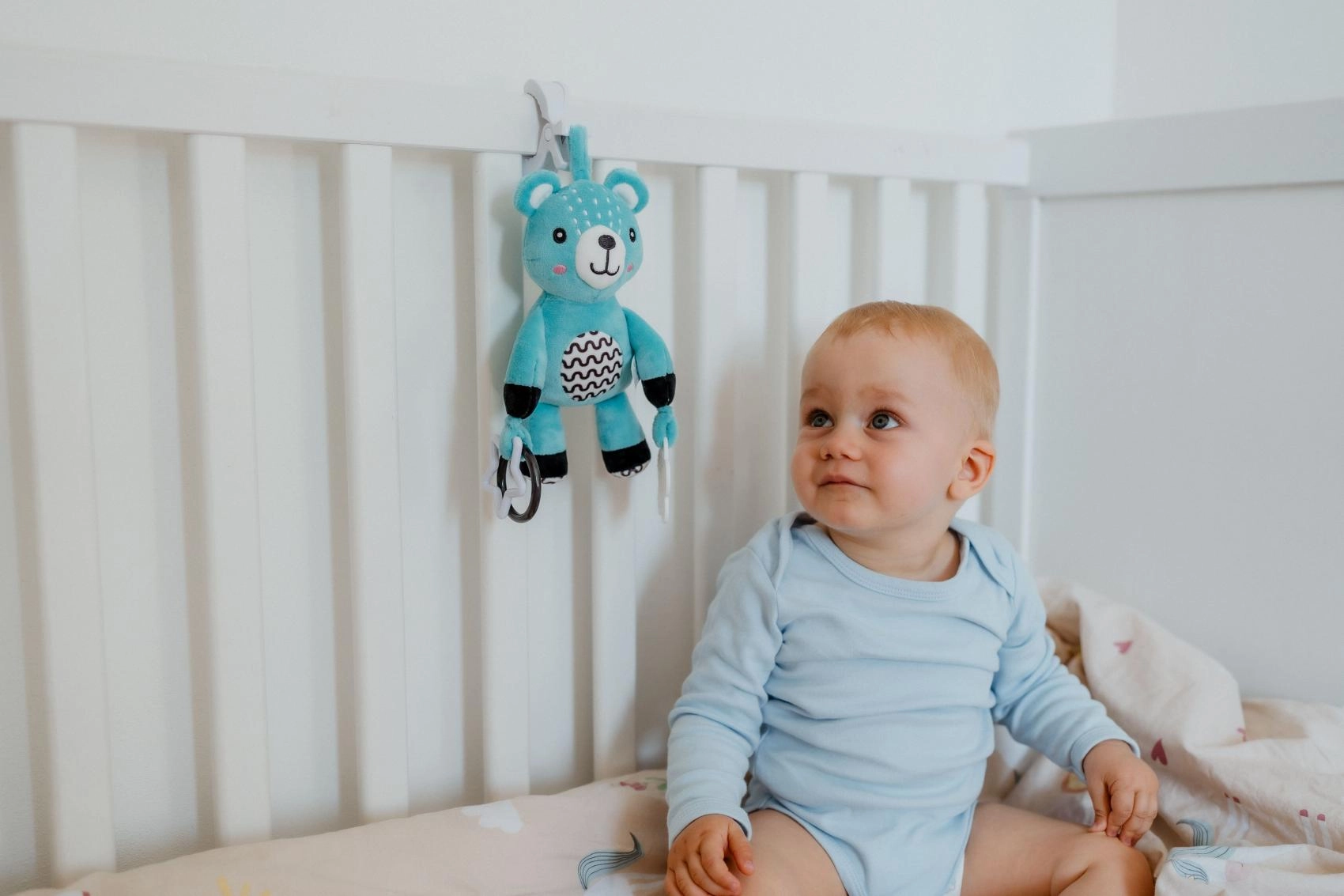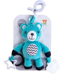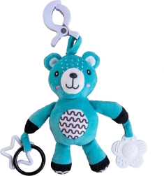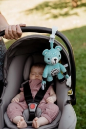 Ta plišasti medvedek je zasnovan za najmlajše otroke od 0 mesecev. Z univerzalno sponko ga zlahka pritrdite na voziček, posteljico, avtosedež ali igralni lok. Mehka površina vabi k crkljanju, medtem ko nežna ropotuljica podpira slušno zaznavanje in pritegne dojenčkovo pozornost.