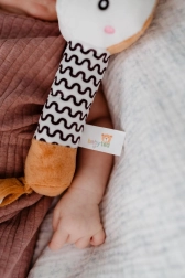 Dolgo in mehko telesče je lahko prijeti z majhnimi rokicami, črno-beli vzorec pa podpira vizualno zaznavanje dojenčkov.