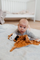 Prisrčna ninica z živalico je idealna za dojenčke že od rojstva. Mehka minky tkanina s 3D pikicami pomirja, mehko grizalo lajša pri izraščanju zobkov, nežna ropotuljica pa spodbuja radovednost in razvija sluh. Izdelek je certificiran v Sloveniji za največjo varnost.