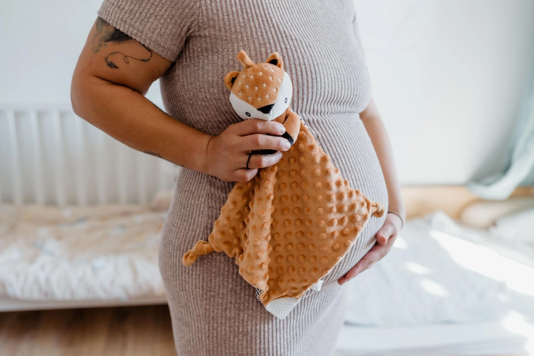 - Mehka tekstilija (minky) s 3D pikicami, plastično grizalo