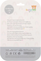 Ob pritisku igrača odda prijeten piskajoč zvok, ki dojenčka zabava in spodbuja njegovo slušno stimulacijo.