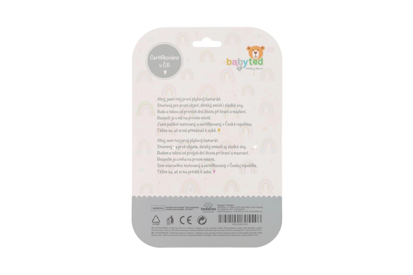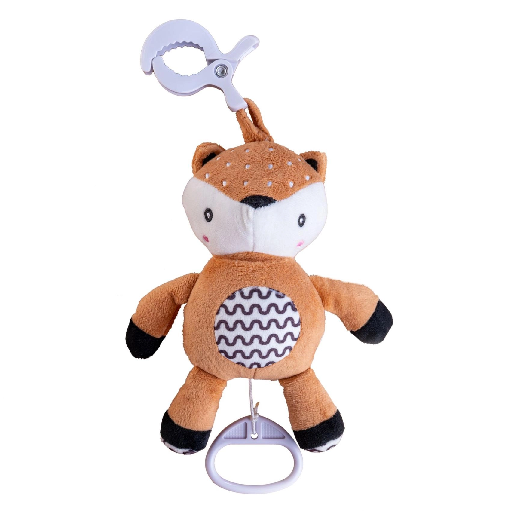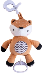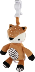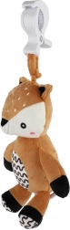 Preprosto pritrjevanje omogoča vzdržljiva obešalna sponka, zato lahko srnjaček spremlja vašega dojenčka v vozičku, avtosedežu, na posteljici ali na igralnem loku. Kontrastni vzorci na trebuščku in nežne podrobnosti podpirajo razvoj vida in fine motorike.