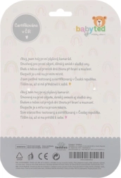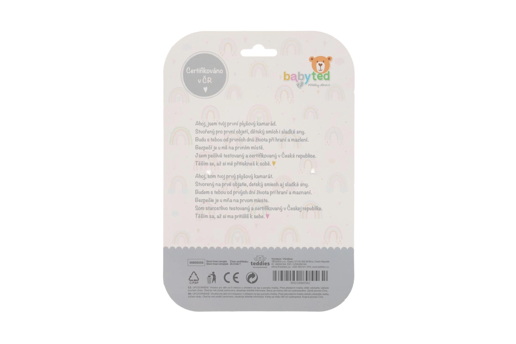 Žameten material je prijeten za občutljive otroške roke, črno-beli vzorci na ušeskih in trebuščku pa podpirajo zgodnji razvoj vida.