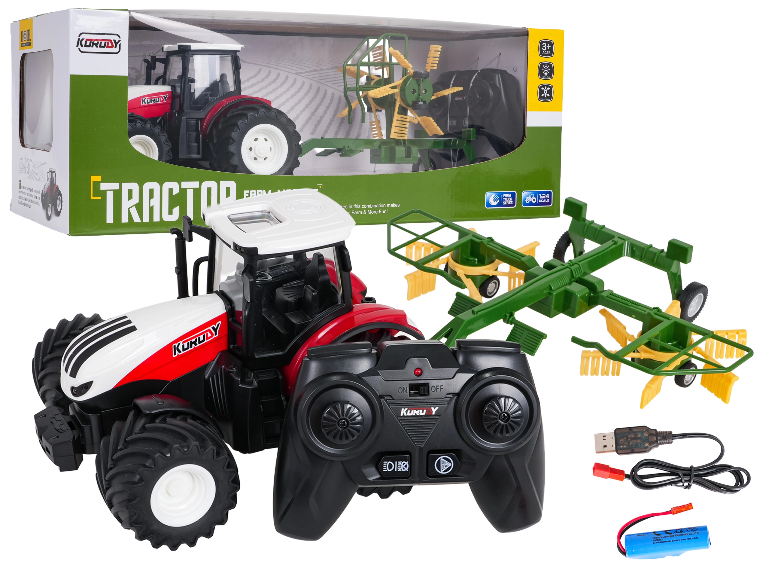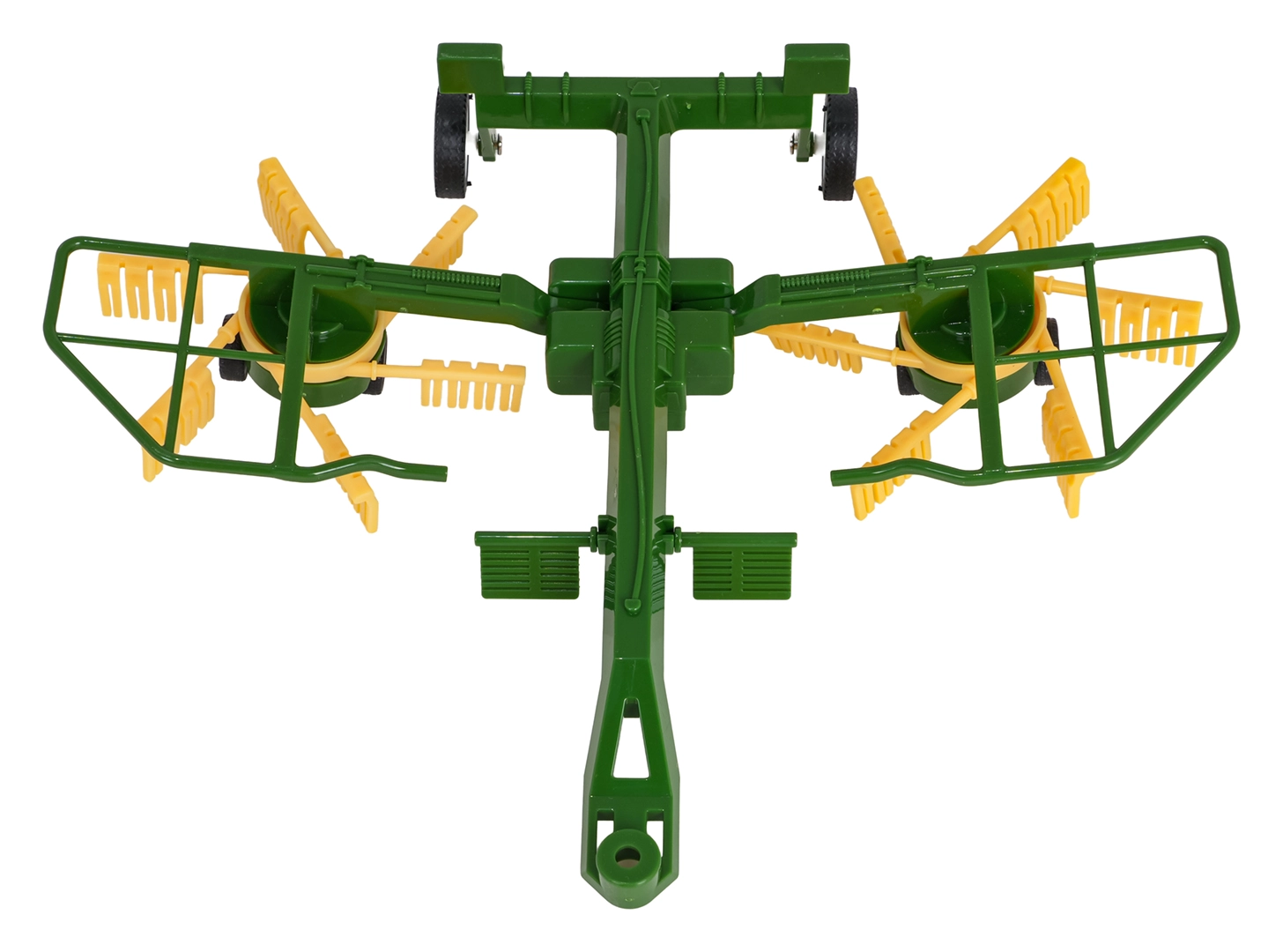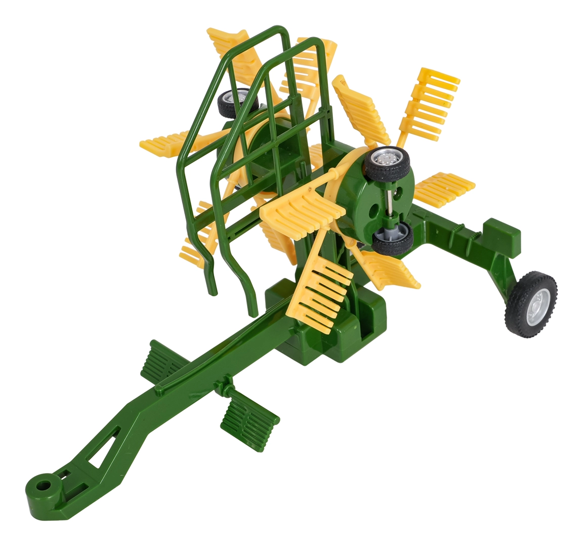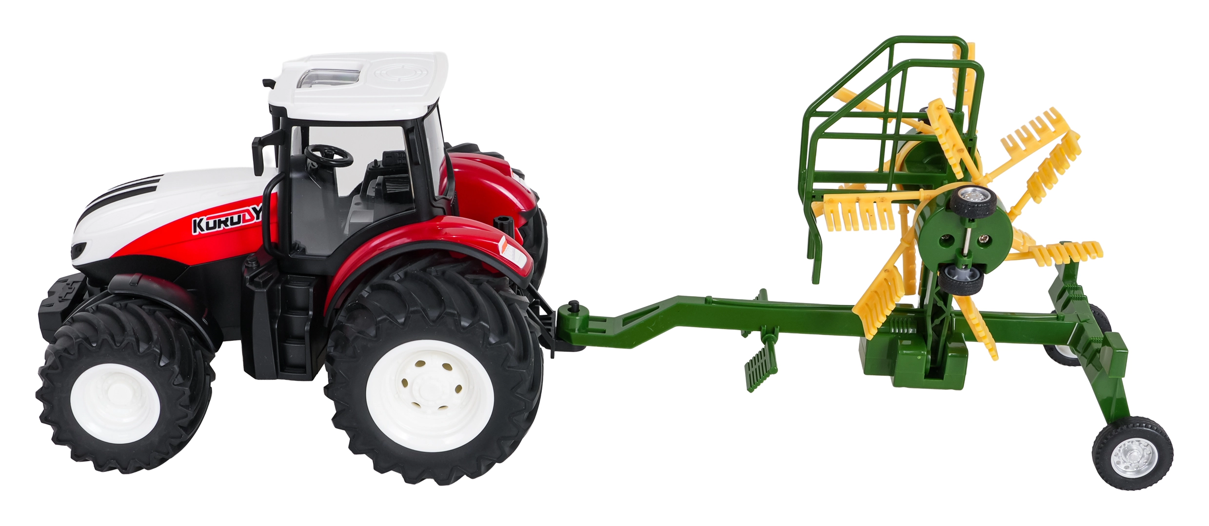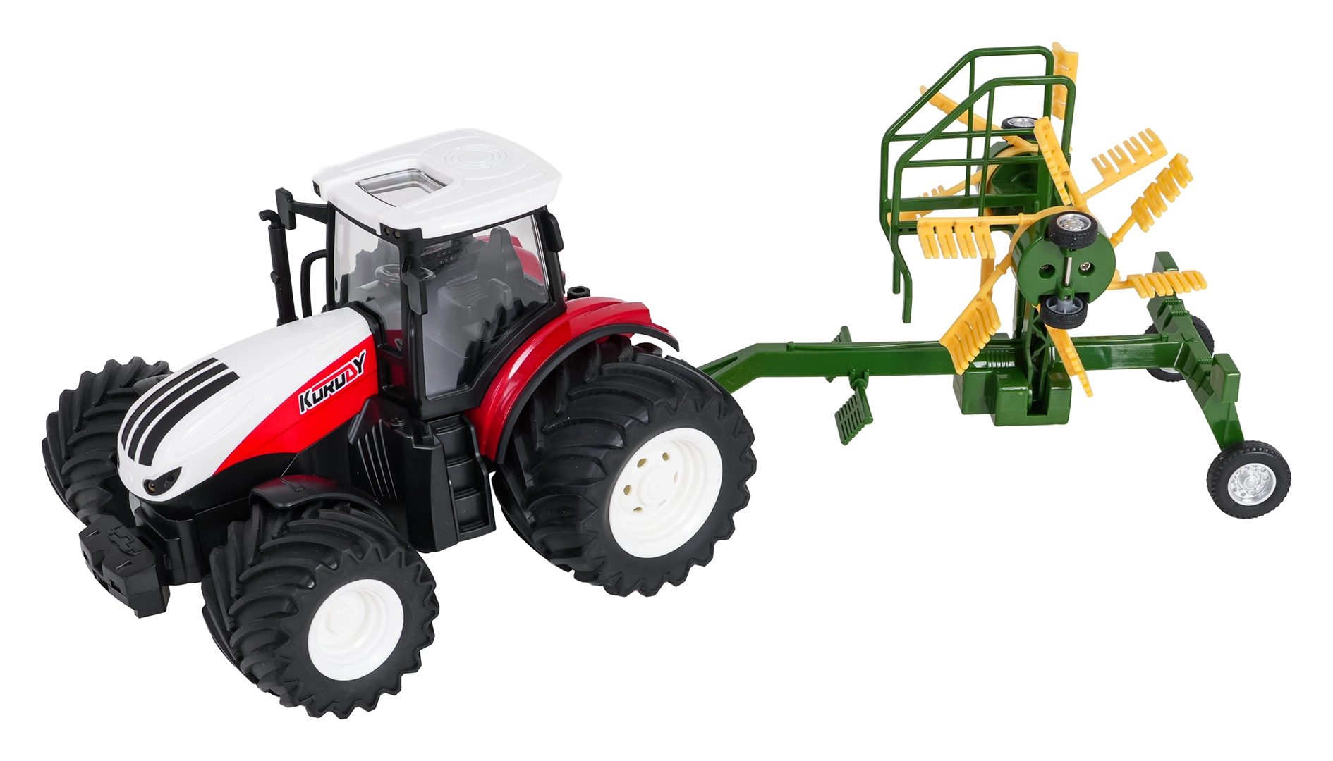 Zabaven in vzdržljiv RC traktor z obračalnikom sena v merilu 1:24 navduši male kmete od 3 let naprej. Ponuja vožnjo v vse smeri, 2,4 GHz daljinsko upravljanje, sprednje luči in osvetlitev kabine ter velika gumijasta kolesa za odličen oprijem. Dvovretenski obračalnik je mogoče zložiti na stran, odklopiti in njegove rotorje ročno vrteti. Na voljo je tudi demo način za hitro predstavitev funkcij.