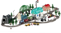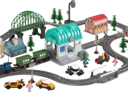 Zgradite svoje železniško mestecce in pustite lokomotivi, da se pelje čez most in skozi tunel do postaje. Zahvaljujoč realističnim zvočnim in svetlobnim učinkom je vožnja pristna, otroci pa si lahko ustvarjajo svoje zgodbe z figuricami, avtomobilčki in prometnimi znaki. Magnetne sklopke trdno držijo vagone skupaj, zato je vožnja gladka in stabilna.