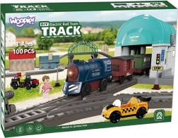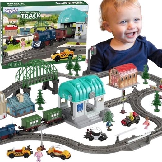 Obsežna električna železniška proga znamke WOOPIE prinaša otrokom svet domišljije v obliki mesteca z mostom, tunelom in postajo. Lokomotiva z lučmi in zvoki, magnetno spajanje vagonov ter 108 delov za gradnjo raznolikih prog zagotavljajo dolge ure zabave in razvoja ustvarjalnosti. Preprosta montaža, varni materiali in delovanje na baterije bodo razveselili otroke in starše.
