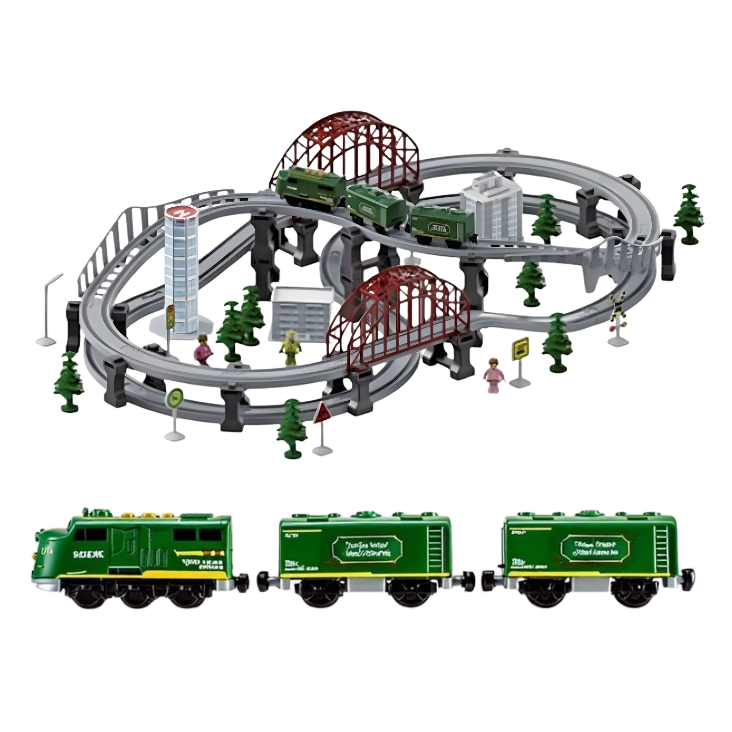 Odkrijte ustvarjalni svet železnic z razširjeno sestavljanko znamke Woopie. Ta set prinaša električno lokomotivo z magnetnimi vagoni, svetlobne in zvočne učinke ter bogate dodatke za gradnjo mostov in viaduktov. Zahvaljujoč varni, kakovostni plastiki in enostavnemu magnetnemu spajanju bodo otroci uživali v tekoči igri brez frustracij. Idealno za razvoj kreativnosti, logike in fine motorike.