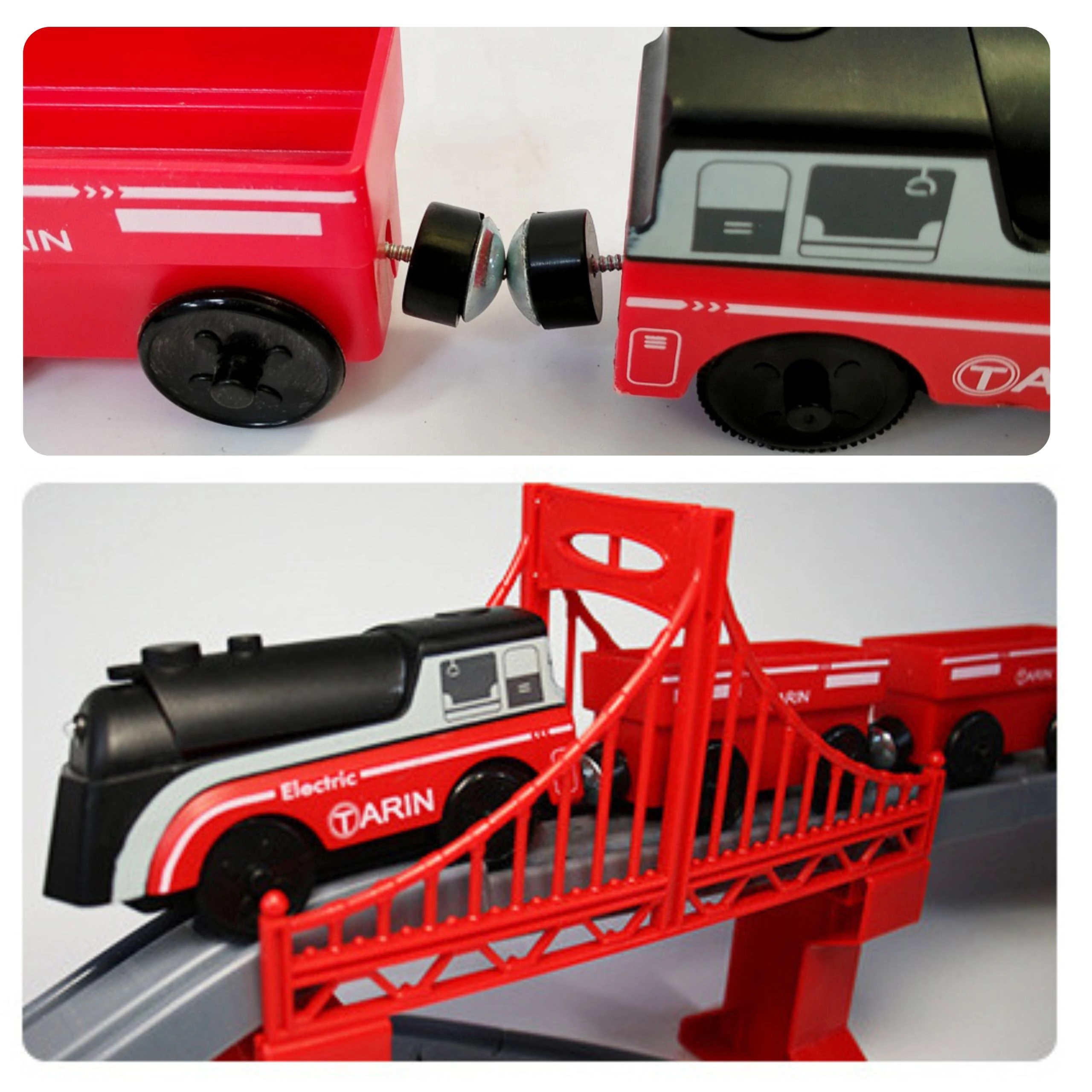 Lokomotiva na 1× AAA baterijo požene kompozicijo po progi in poskrbi za avtentičnost igre. Otroci bodo uživali v gladki vožnji preko mostu in skozi predor.