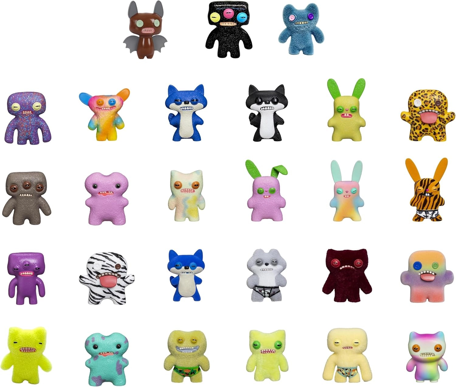 Komplet FUGGLER prinaša dve naključni figurici, od katerih ima vsaka svoj izraz, barve in teksture. Od razgaljenih zobkov in gumbastih oči do kosmatih ali plastičnih površin – te bizarne »ugly-cute« figure so ustvarjene, da zabavajo in izstopajo tako na polici kot na delovni mizi.