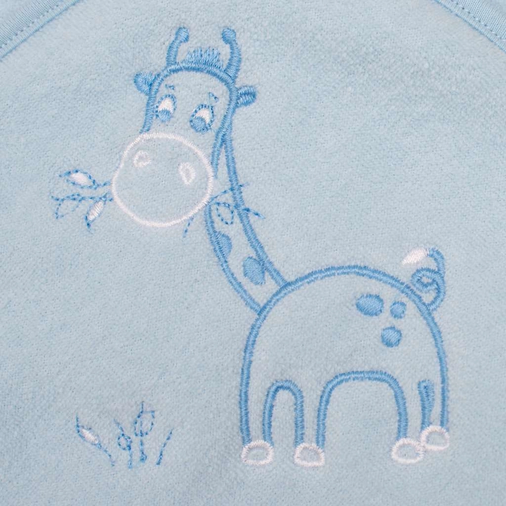 Mehka otroška frotirna brisača s kapuco je idealna za dojenčke in večje otroke. Odlično greje po kopanju, se hitro suši, odlično vpija in kapuca ščiti glavico pred mrazom. Krasí jo veselo vezenje žirafe.
