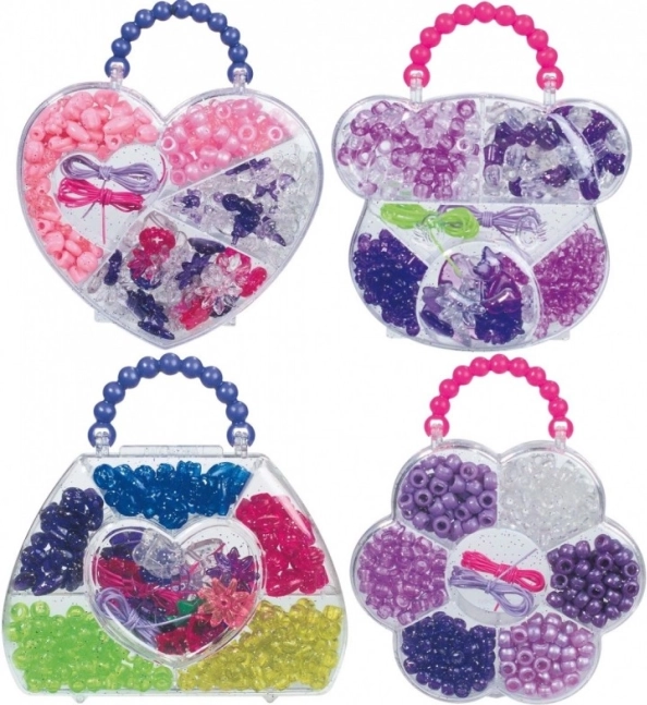 Vse je pregledno shranjeno v priročnem plastičnem ohišju s 4 različnimi oblikami. Barve in oblike perlic ter oblika škatlice se izbirajo naključno, zato je vsak set presenečenje.
