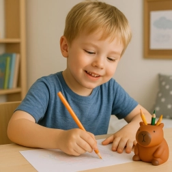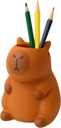 Ta dekorativni organizator v obliki kapibare je izdelan iz kakovostnega dekorativnega materiala z mat površino in toplim rjavim odtenkom. Zaradi zaobljenih linij deluje prijazno in se odlično poda tako v moderne kot tudi v domačne interierje. Zgornja odprtina/steber omogoča pregledno shranjevanje pisal, čopičev ali drobnarij.