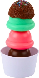 Ustvarite svoj sladoledni bar! Otroci lahko kombinirajo barve, nalagajo kepice, servirajo v lončke, kornete ali kot lučke. Set je idealen za samostojno in skupinsko igro, razvija kreativnost, sodelovanje in koordinacijo.