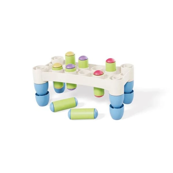 Varne, gladke oblike in žive barve podpirajo vizualno zaznavanje in motivirajo k ponavljajoči se igri. Komplet je zasnovan tako, da vsi deli odlično sodelujejo in so enostavno oprijemljivi tudi za majhne roke.