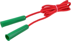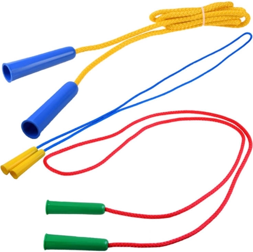 Lahka in trpežna otroška kolebnica s plastičnimi ročaji in pleteno vrvjo dolžine 206 cm za zabavo in trening. Odlična za šolsko dvorišče, igrišče in vadbo doma. Spodbuja koordinacijo, kondicijo in spretnost. Barva je dobavljena naključno.