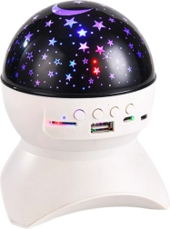 Ta elegantni beli projektor zvezd bo spremenil otroško sobo, spalnico ali dnevni prostor v sprostitveno oazo. Zahvaljujoč LED projekciji zvezd in lune ustvari pomirjujoče okolje za uspavanje, branje ali večerni počitek. Vgrajeni Bluetooth zvočnik omogoča predvajanje priljubljenih uspavank, ambientalne glasbe ali zvočnih pravljic neposredno s telefona, USB diska ali kartice microSD.