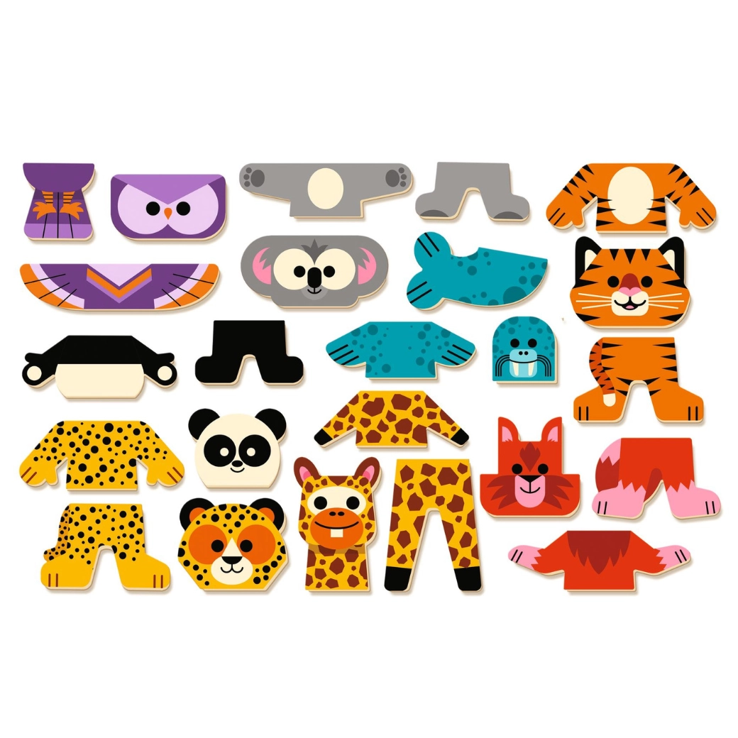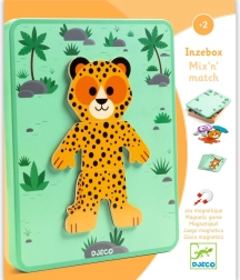 Djeco Inzebox Mix and Match je izvirna magnetna sestavljanka, ki otrokom omogoča kombiniranje glav, trupkov in nogic različnih živalic. Iz enega seta nastanejo desetine veselih kombinacij – od geparda do prikupne pande. Igra spodbuja ustvarjalnost, koordinacijo oko–roka in fino motoriko.