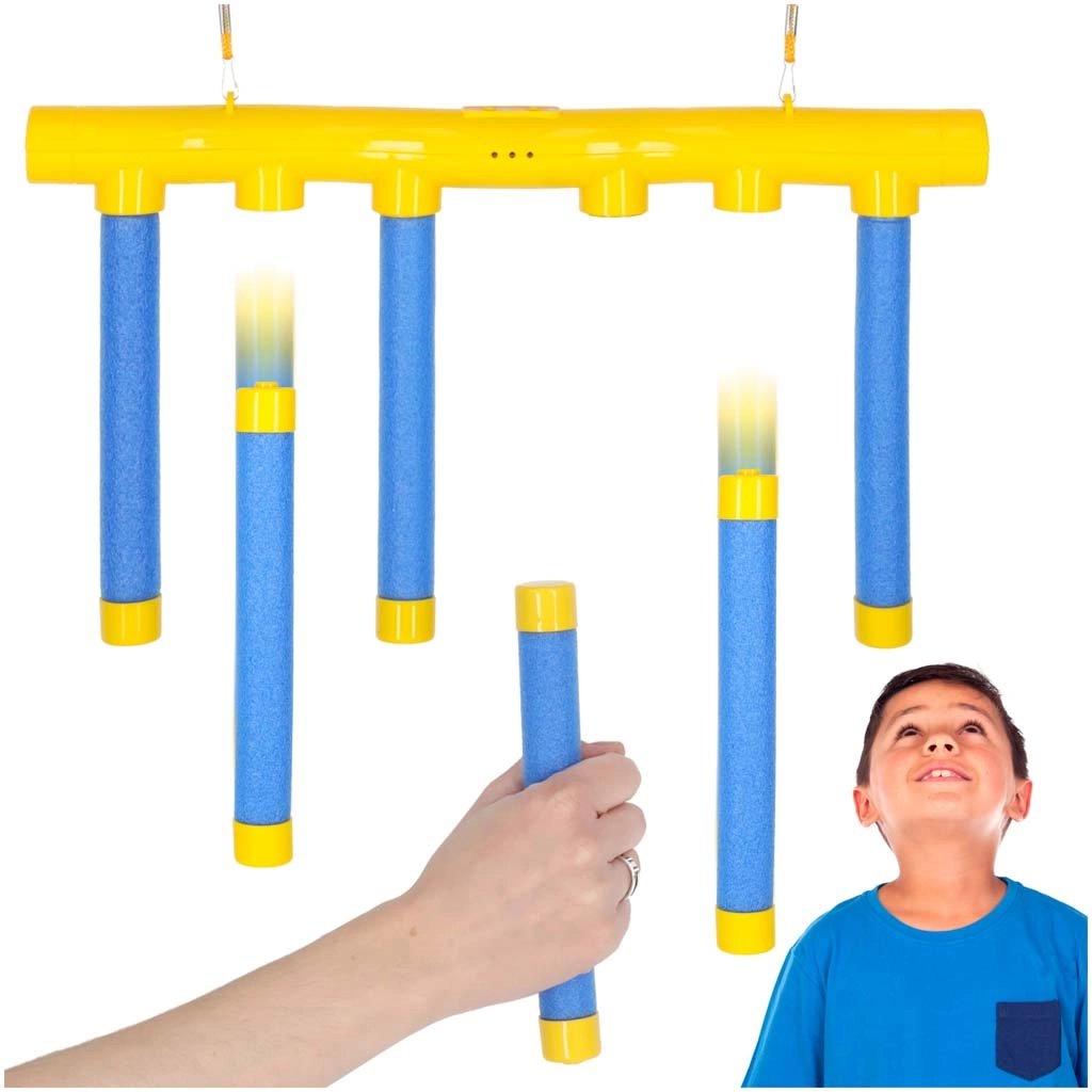 Vadite reflekse z interaktivno igro Padajoče palčke. Ujemite palčke, preden padejo, in uživajte v zabavi za vso družino. Igra ponuja 3 hitrosti padanja, glasovna navodila, LED indikator in samodejni izklop za varčevanje z energijo. Enostavno obešanje na kavlje ali pod strop ter USB polnjenje zagotavljata hitro pripravljenost za akcijo.