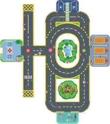 Otroci odkrijejo bolnišnično območje, prehode za pešce, ribnik in otroško igrišče. Igralni svet podpira igro vlog in učenje pravil cestnega prometa.
