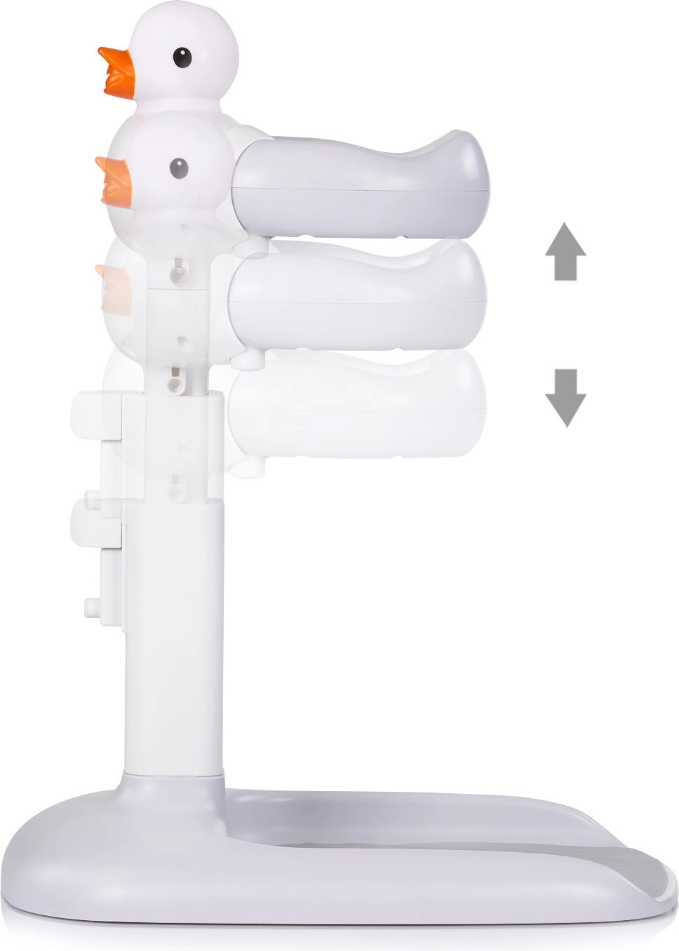 Otroško kopalno stojalo CHIPOLINO Duck izstopa z igrivim dizajnom, ki otrokom pomaga doživljati kopanje pozitivno. Zahvaljujoč nastavitvi višine ga zlahka prilagodite potrebam otroka in udobju staršev. Široka, stabilna osnova s protidrsno obdelavo nudi zanesljivost pri vsakodnevni uporabi.