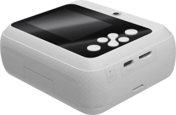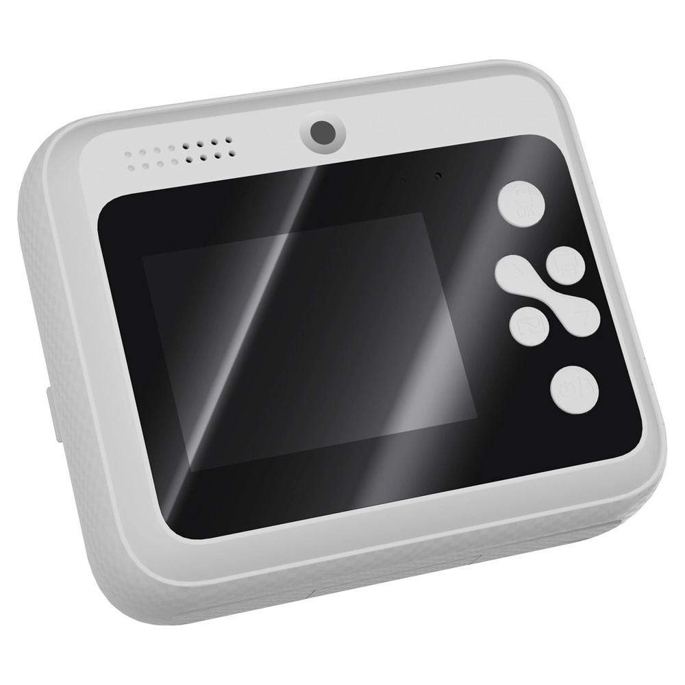 Na 2,4" barvnem zaslonu lahko otroci enostavno pregledujejo posnetke, izbirajo načine in prilagajajo nastavitve. Selfie način olajša avtoportrete in skupinske fotografije, štiri vgrajene igre pa poskrbijo za dodatno zabavo. Z baterijo 1200 mAh deluje do 6 ur, polnjenje pa je udobno prek USB‑C. Pomnilnik je mogoče razširiti s kartico microSD do 32 GB, v paketu pa ne manjkajo 2 roli termičnega papirja, pašček in nalepke.