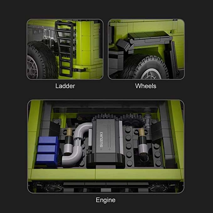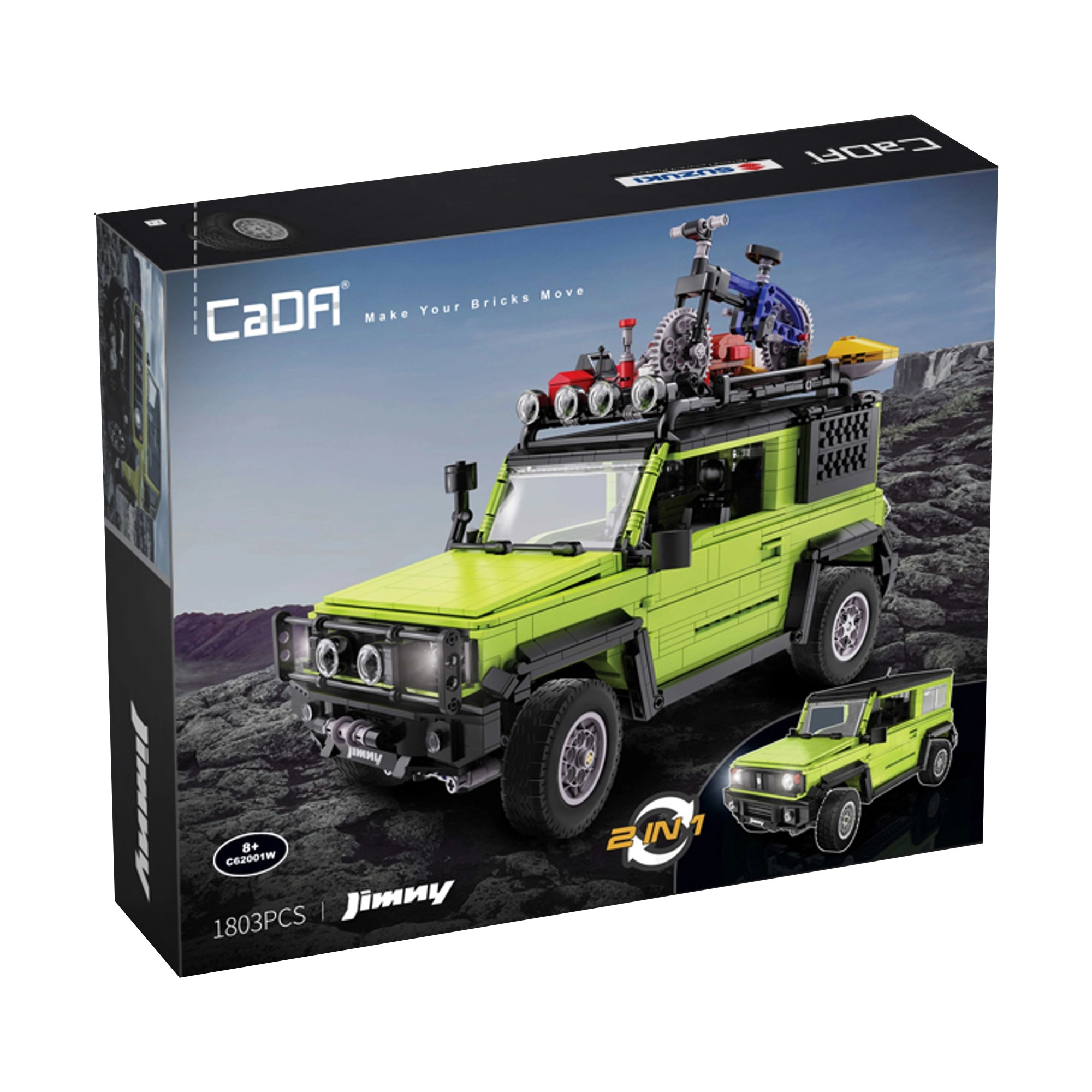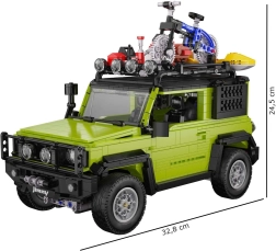 CaDA SUZUKI JIMNY v zeleni barvi je podroben gradbeni komplet za ljubitelje terenskih vozil. Iz enega seta sestavite dve različici – kompaktni off‑road ali praktični karavan. Model ima funkcionalne elemente, odpiranje vseh panelov in stabilno podvozje z gumijastimi pnevmatikami, zato se gladko prevaža po različnih podlagah. Na strehi so nosilci za kamping dodatke, ki spreminjajo slog in uporabnost vozila.