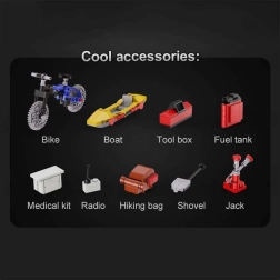 Model je mogoče razširiti z baterijo, motorjem, servom, upravljalnikom in LED (niso priloženi). Pridobite vožnjo naprej/nazaj, zavijanje in vklop/izklop luči.