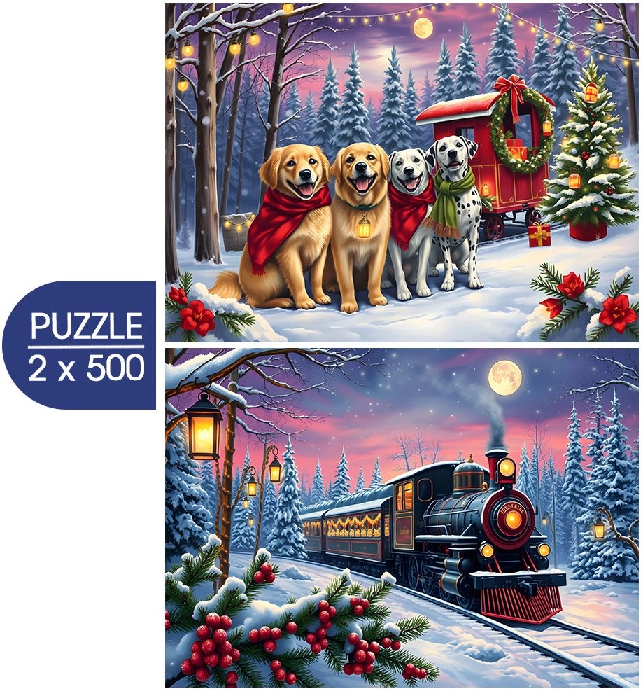 Odkrijte čar božiča s kakovostno sestavljanko znamke Bluebird. Dve sliki po 500 koščkov prinašata čudovite praznične ilustracije, ki bodo razveselile otroke in odrasle. Natančen izrez zagotavlja udobno sestavljanje in trdno povezavo koščkov.