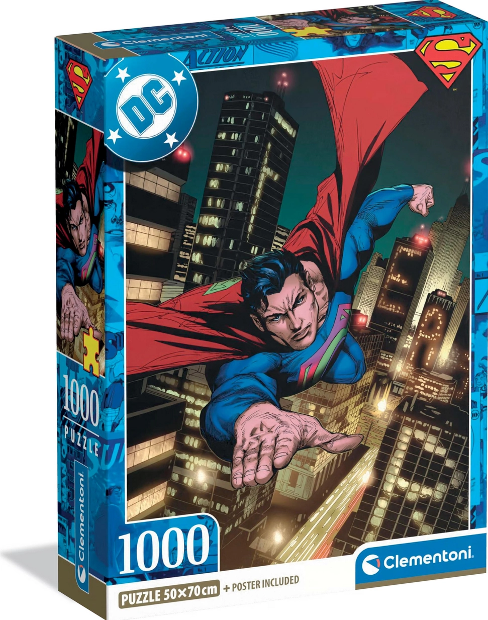 Vstopite v svet stripov s sestavljanko Clementoni Superman: Zaščitnik. Zahvaljujoč visoko kakovostnemu tisku, živim barvam in natančnim izrezom je sestavljanje tekoče in prijetno. Format 50 × 70 cm je odličen za uokvirjanje in razstavljanje.