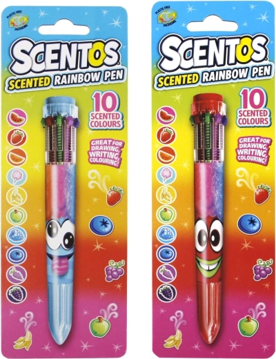 Dišeče mavrično kulinčno pero SCENTOS je zabaven in praktičen pisalni pripomoček za šolo in dom. V enem ohišju ponuja kar 10 živahnih barv, ki jih preprosto izberete s pomočjo gumbov. Vsaka barva ima svoj značilen sadni vonj (npr. jagoda, banana, jabolko), ki pisanju in risanju doda nov čutni razsežek.