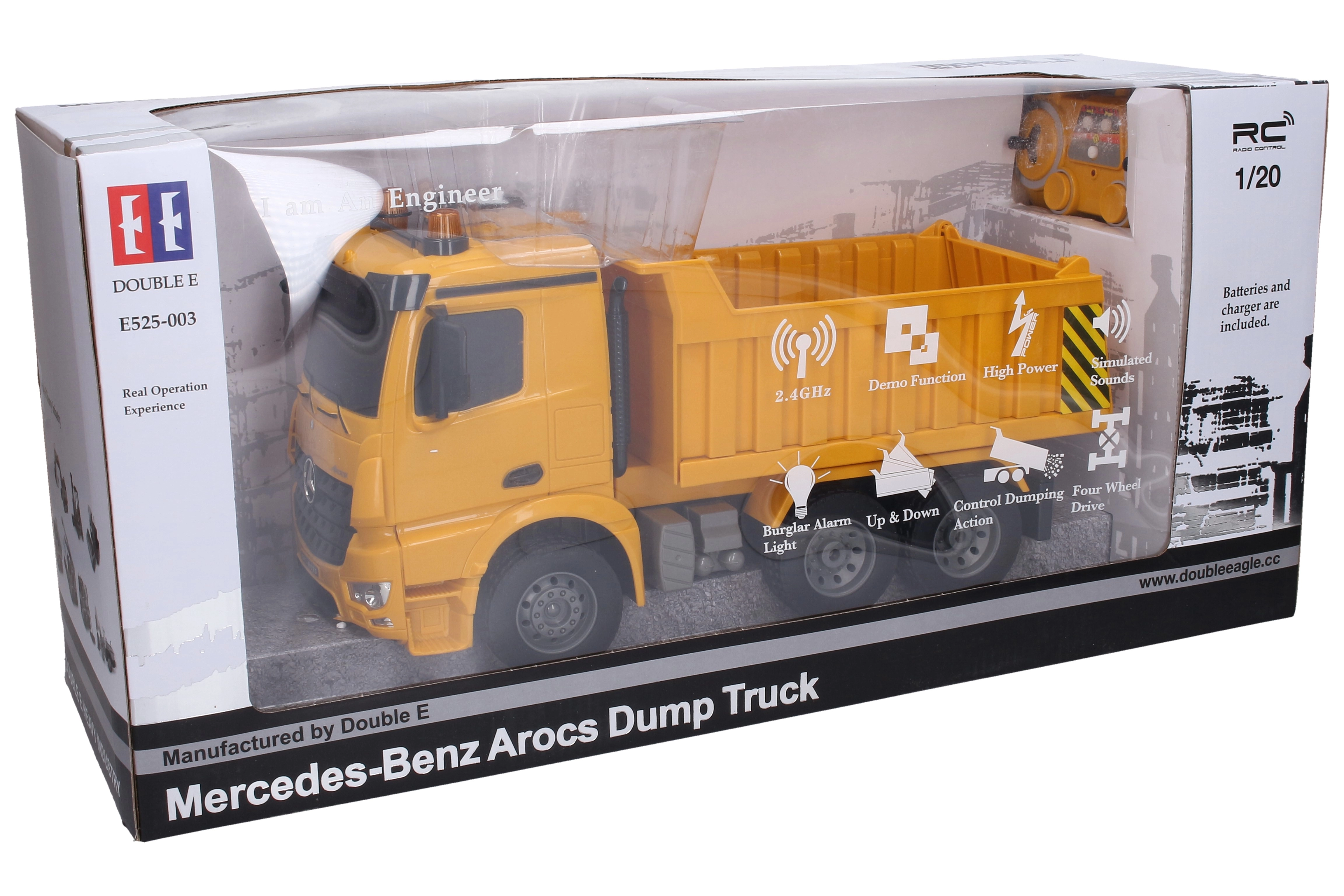 Uživajte v realistični gradbeni zabavi z RC prekucnikom MERCEDES dolžine 35 cm. Ponuja 2,4GHz upravljanje, svetlobne in zvočne učinke, funkcionalno nagibanje in prekladanje kesona ter udobno polnjenje prek USB. Priložen je baterijski paket 4,8V 400mAh za vozilo.