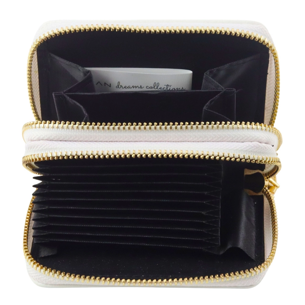 Ločite kartice, gotovino in drobnarije v dva samostojna prostora. Zlate zadrge zagotavljajo varno in elegantno zapiranje.